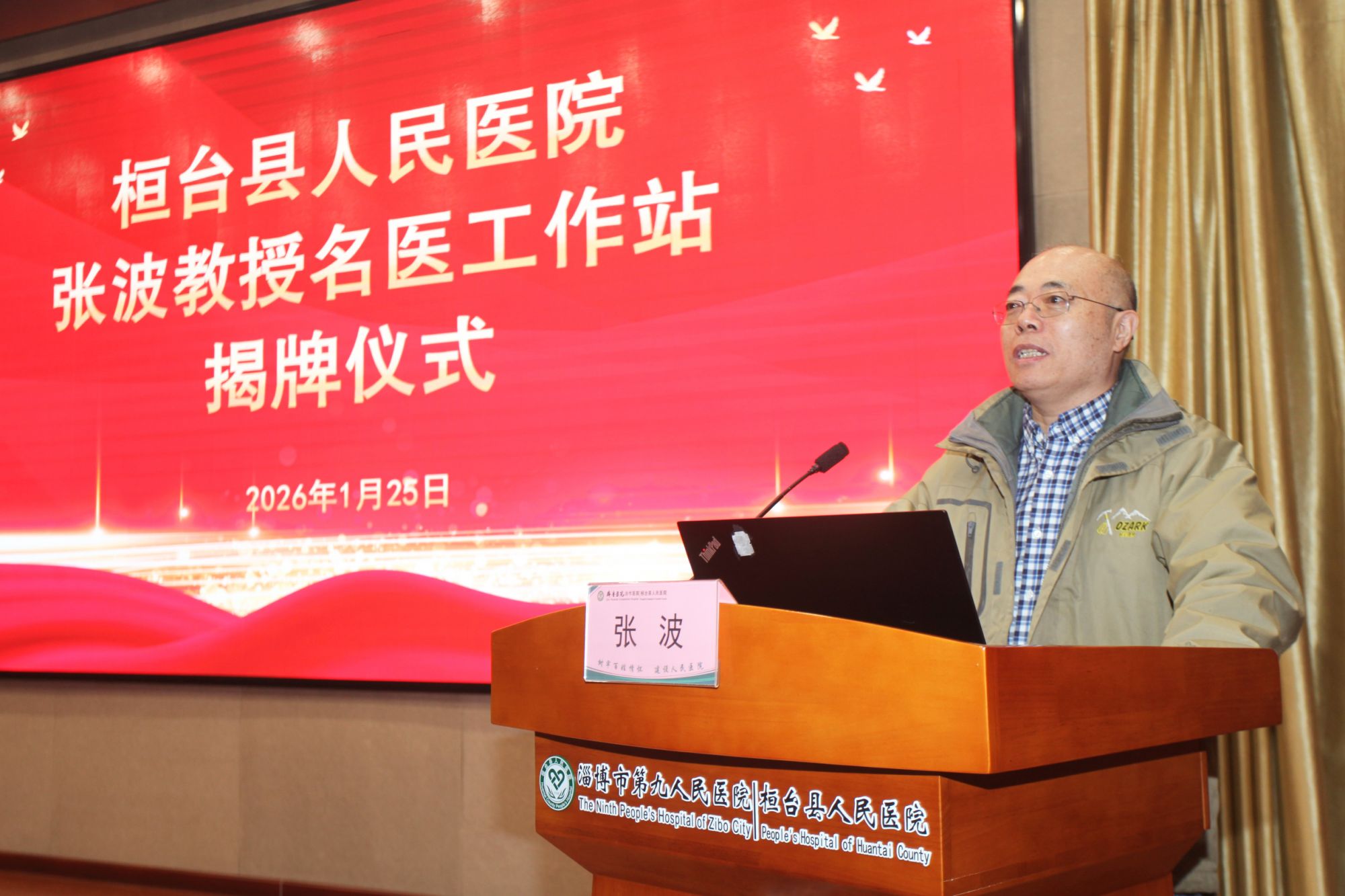 副县长樊涛主持揭牌仪式。 张奎国在致辞中表示,张波教授是从桓台走出去的学者和医者,凭借深厚的学术造诣、精湛的医疗水平和高尚的医者风范,在国内医学界树立了崇高的地位,是全县人民的骄傲。他说,张波教授不仅是个医学大家,更是一个富有浓厚人文情怀和鲜明学术特色的思想者,其所秉持的“临床思维、无创诊疗、逻辑分析”理念体系,正是现代价值医疗思想理念的精髓体现,这一体系的引入必将给医院学科建设、人才培养和医疗服务模式革新,注入最先进、最强大的思想动能和实践指南。医院将全力做好服务保障,虚心学习,着力在复杂疾病诊疗、学科内涵深化、科研项目攻关以及临床思维训练等方面取得实质性突破,真正让工作站的落地转化为提升医院核心竞争力的发展实效,转化为惠及全家万户的健康福祉。 张波教授对医院呼吸与危重症医学科近年来取得的成果给予高度肯定,并对能够回到家乡开展工作表达了深厚的情感。他强调,工作站成立后,将以呼吸系统感染与疑难重症临床诊疗为核心,持续强化学科能力、推动技术创新,全力提升桓台地区呼吸系统疾病的综合诊治水平,切实为家乡群众的呼吸健康贡献力量。 郑元水对我院在学科建设、运营管理及医疗服务等方面取得的成效给予了充分肯定。他表示,呼吸系统健康是全民健康的基石,也是推进“健康淄博”建设的关键环节。张波教授作为我国呼吸与危重症领域的权威专家,此次工作站落户桓台县人民医院,是推动全市优质医疗资源扩容下沉、促进医疗均衡发展的重要举措,将为我市呼吸学科建设、人才培养和科研创新注入新的动力。他期望桓台县人民医院紧抓此次机遇,在张波教授的引领下,持续提升诊疗水平与学科影响力,着力建设区域呼吸疾病诊疗高地,让优质医疗服务更好地惠及人民群众。 张波教授、郑元水主任为“张波教授名医工作站”揭牌。 揭牌仪式后,举办第二期“桓医学习论坛”,张波教授以“学科建设与运营管理”为主题作专题授课。他结合个人成长历程与丰富管理经验,围绕学科发展方向定位、临床基本技能强化、疑难危重病例救治能力提升以及科研意识与思维培养等方面,进行了系统而深入的阐释,为医院优化学科发展路径、提升综合运营管理水平提供了宝贵借鉴与指导。 张波 中国人民解放军空军总医院原副院长 中央军委保健会诊专家 医学博士、主任医师、教授、博士研究生导师 呼吸与危重症知名专家,长期从事呼吸危重病专业和高干医学保健工作,擅长呼吸危重病的救治、呼吸疑难/少见病的诊断和治疗、重症肺部感染的诊断与治疗、各种类型急、慢性呼吸衰竭的诊断与治疗、骨髓移植及肾移植后肺部并发症的处理、肺部疑难病的影像学诊断等,尤其精通呼吸机应用技术,成功救治了多例疑难、危重的急性呼吸衰竭患者。任中华医学会呼吸病分会ICU与呼吸生理学组委员,中国呼吸医师分会委员,北京医师分会呼吸医师专家委员会副主任委员,解放军呼吸专业委员会委员。兼任《中国实用内科杂志》、《中国呼吸与危重监护杂志》、《世界急危重病杂志》、《内科理论与实践杂志》、《临床肺科杂志》编委;《国际呼吸杂志》、《中国医疗杂志》常务编委。发表各类学术论文60余篇,获国家科技进步二等奖1项,军队科技进步二等奖一项,军队医疗成果二等奖两项,主编专著2部,参与编写大型呼吸系统疾病专著5部。