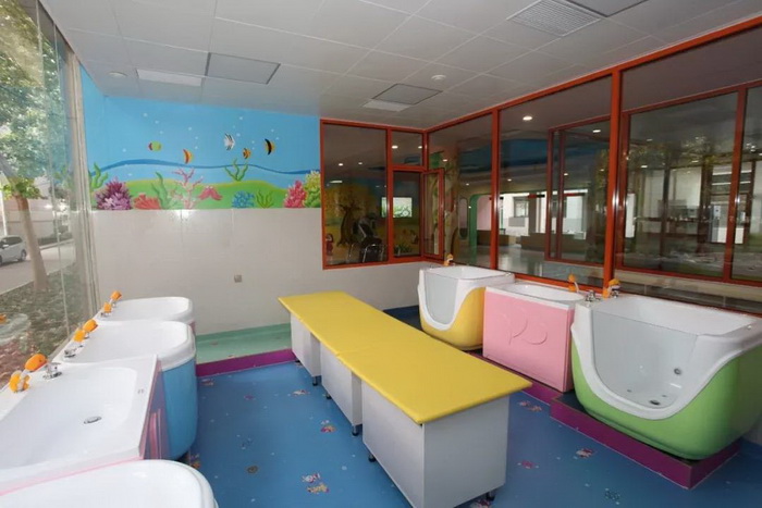 桓台县人民医院儿童游泳馆设在医院儿童健康服务中心,室内布置整齐美观、环境装饰色彩斑斓。游泳馆配备了先进的婴幼儿游泳设施,整个场馆依据儿童对色彩和形状的敏感性进行全新设计,有彩色浴池、恒温洗澡池、抚触按摩、中药药浴(针对有黄疸和湿疹的宝宝)、特色早教三米泳池(包括特色水育早教、恒温池游泳洗澡)、十米儿童游泳池,拥有专业的医护人员及游泳教练为婴幼儿进行水疗、抚触、按摩及游泳指导。是集水中早教、沐浴、抚触、娱乐为一体的大型多功能婴幼儿游泳和水疗场所。
