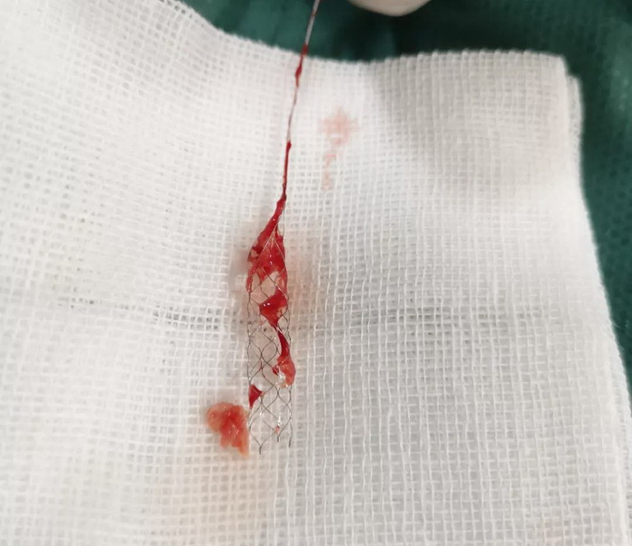与家属沟通后,李女士被送至介入导管室。王克水主任和许业宦主治医师立即为患者实施介入取栓手术,通过脑血管造影检查,精准找到血栓位置,将支架送入病变血管,一次性将血栓全部取出。再次造影显示堵塞动脉已经完全再通,患者脑血流恢复,脑梗死症状迅速缓解,整个手术用时1小时,术后患者安返病房。看到完全恢复的李女士,家属和同事悬着的心这才放了下来。