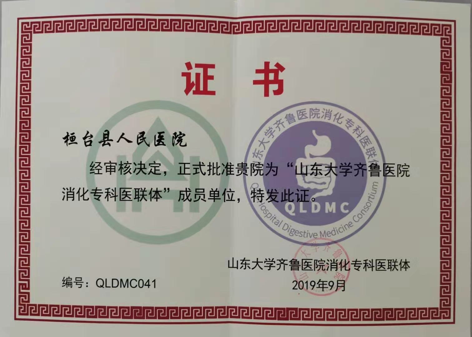 2019年9月12日,由山东大学齐鲁医院成立的消化专科医疗联合体成立大会在济南举行。桓台县人民医院正式成为“山东大学齐鲁医院消化专科医联体”成员单位。