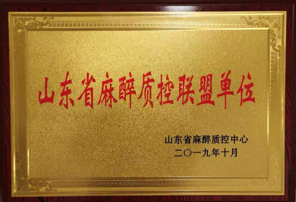 2019年10月20日,我院麻醉科成为山东省麻醉质量控制联盟单位。