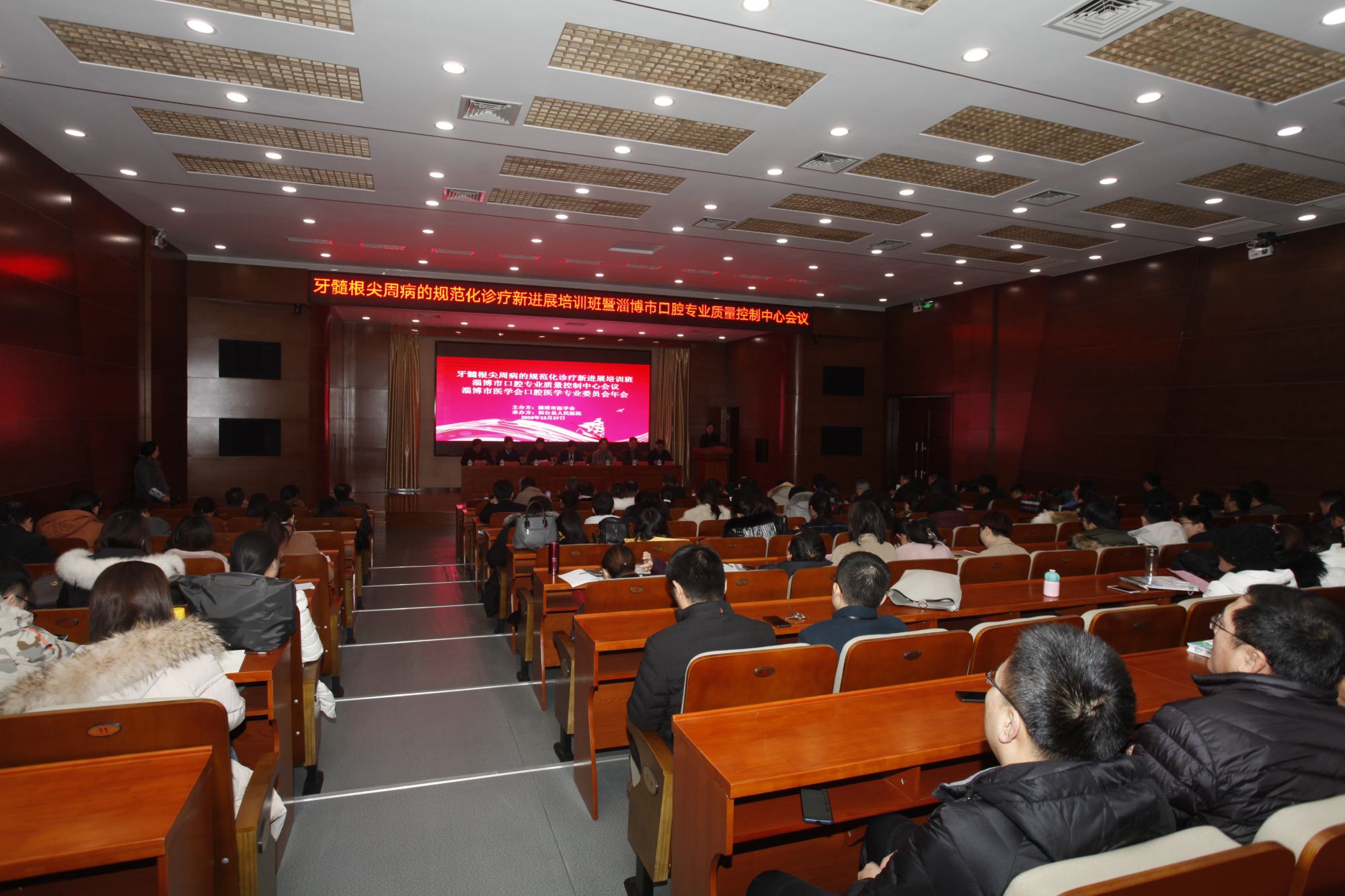 2019年12月27日,牙髓根尖周病的规范化诊疗新进展培训班暨淄博市口腔专业质量控制中心会议在桓台县人民医院视频会议厅举行。山东省口腔医学会会长、山东大学齐鲁医院魏奉才教授,山东省口腔医学会牙体牙髓专业委员会主任委员、青岛大学口腔医学院院长邓婧教授,淄博市卫生健康委医政科孙红霞科长,淄博市医学会口腔医学专业委员会主任委员车宗刚主任,淄博市口腔医学会会长王业岗主任应邀参会。县卫生健康局党组成员、红十字会会长宋希君,桓台县人民医院党委书记、院长李立新出席会议。来自全省25家医院及40多家民营口腔诊疗单位150余人参加了学术交流。会议由桓台县人民医院口腔科主任房俊艳主持。 桓台县人民医院党委书记、院长李立新致欢迎辞 淄博市医学会口腔医学专业委员会主任委员车宗刚主任致辞 淄博市卫生健康委医政科孙红霞科长致辞 山东省口腔医学会会长、山东大学齐鲁医院魏奉才教授致词 会议交流 桓台县人民医院口腔科主任房俊艳就口腔科牙体牙髓专业发展情况进行了汇报。 青岛大学口腔医学院院长邓婧教授进行《慢性根尖周病的治疗细节及策略》专题讲座。 山东省立医院口腔内科副主任尹新芹教授进行《根管治疗临床病例解析》专题讲座。 淄博市口腔质量控制中心主任车宗刚教授对2019年淄博市口腔专业质量控制工作进行了总结,并对2020年质控工作进行安排部署。 本次学术会议汇聚了省内众多知名专家,聚焦学术热点,在场学员踊跃提问,会场学术气氛浓厚。会议为我市口腔专业医务人员提供了一次高水平的学术交流机会,对我市牙髓根尖周病的规范化诊疗和持续性改进有极大的推动作用。
