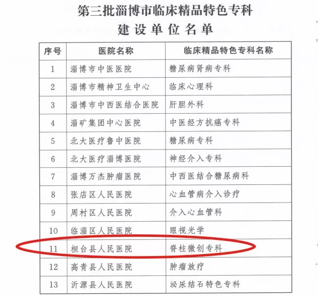 近日,淄博市卫生健康委、市发展改革委和市市场监管局公示了我市第三批临床精品特色专科建设单位。桓台县人民医院脊柱微创专科入选为淄博市临床精品特色专科建设单位。