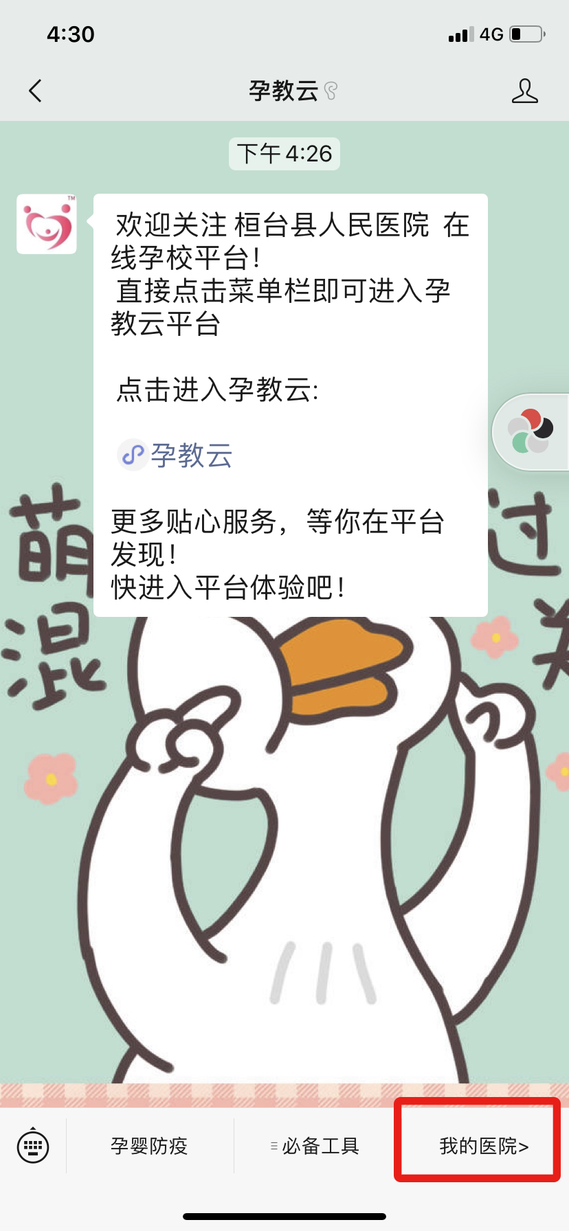 为保障母婴安全,避免交叉感染,疫情期间,桓台县人民医院特别推出线上孕妇课堂,让广大孕妈在家就能学习科学的孕期保健知识,欢迎广大孕妈扫码报名参加! 预约流程 一、扫描下方二维码或微信关注公众号“孕教云” 二、点击右下方“我的医院” 三、填写您的出生日期和预产期后,点击“开始使用” 四、在约课界面,点击“我要预约” 五、查看课程详情,点击“我要预约” 六、确认您预约的课程正确,点击“确认” 温馨提示:孕妇课堂授课时间为每周一、周五上午10:00-10:30,每期课程可进行视频回放。特殊时期,各位准妈妈们一定要坚持网上学习孕期知识。 咨询电话:杨老师18505338683