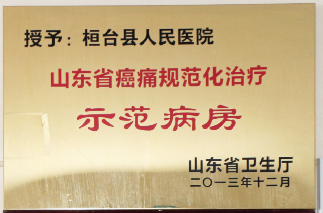桓台县人民医院肿瘤科于2013年通过省卫生厅评审成为“山东省癌痛规范化治疗示范病房”,是淄博市唯一一家获此殊荣的区县级医院。2018年1月再次高分通过癌痛规范化治疗示范病房复评。