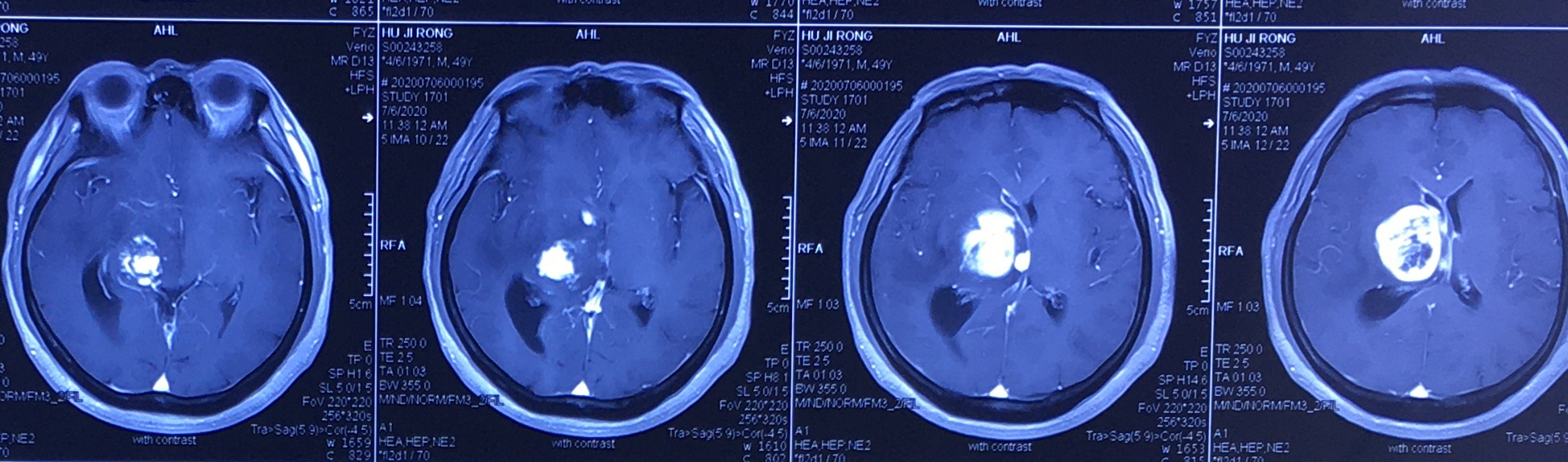 病例 (术前) 49岁的胡某,因头部昏沉不适3个月到我院神经外科就诊,颅脑MRI显示右侧丘脑占位性病变,病变性质不明。考虑到患者仅四十多岁,病灶位于重要功能区,开颅手术切除术后偏瘫风险极大。神经外科团队精确规划设计路径和靶点,安装立体定向头架后,于7月9日全麻下行立体定向脑内病灶活检术。 (术前规划设计路径和靶点) 术中按照术前规划的路径及靶点,顺利取出病变组织,术中快速冰冻病理显示为恶性肿瘤,术后送常规病理及免疫组化进一步确诊及分类。术后复查颅脑CT显示无明显出血,患者病情稳定,肢体感觉运动正常。术后第二天即下床活动。 (术中利用活检针取材) 病理诊断是脑内病灶定性诊断的金标准。立体定向活检术是明确颅内深部病变组织病理学诊断的安全、有效方法;由于立体定向三维靶点定位的误差范围在1.0mm以内,定向活检既可以补充影像技术对病变定性诊断的不足,又避免了开颅手术导致神经功能损害,而且定位准确,创伤小,安全可靠,并发症少,病人痛苦小,医疗费用低。 它不仅可提供可靠的病理学依据、达到定性诊断的目的,还可以同期配合后续治疗(肿瘤内植入放射性粒子)。立体定向活检术有不同的引导方式,且越来越先进和精细,此项技术包含很多细节和内容,技术含量高。脑立体定向手术还可用于脑出血、帕金森病、癫痫、疼痛、精神性疾病的精准手术治疗。