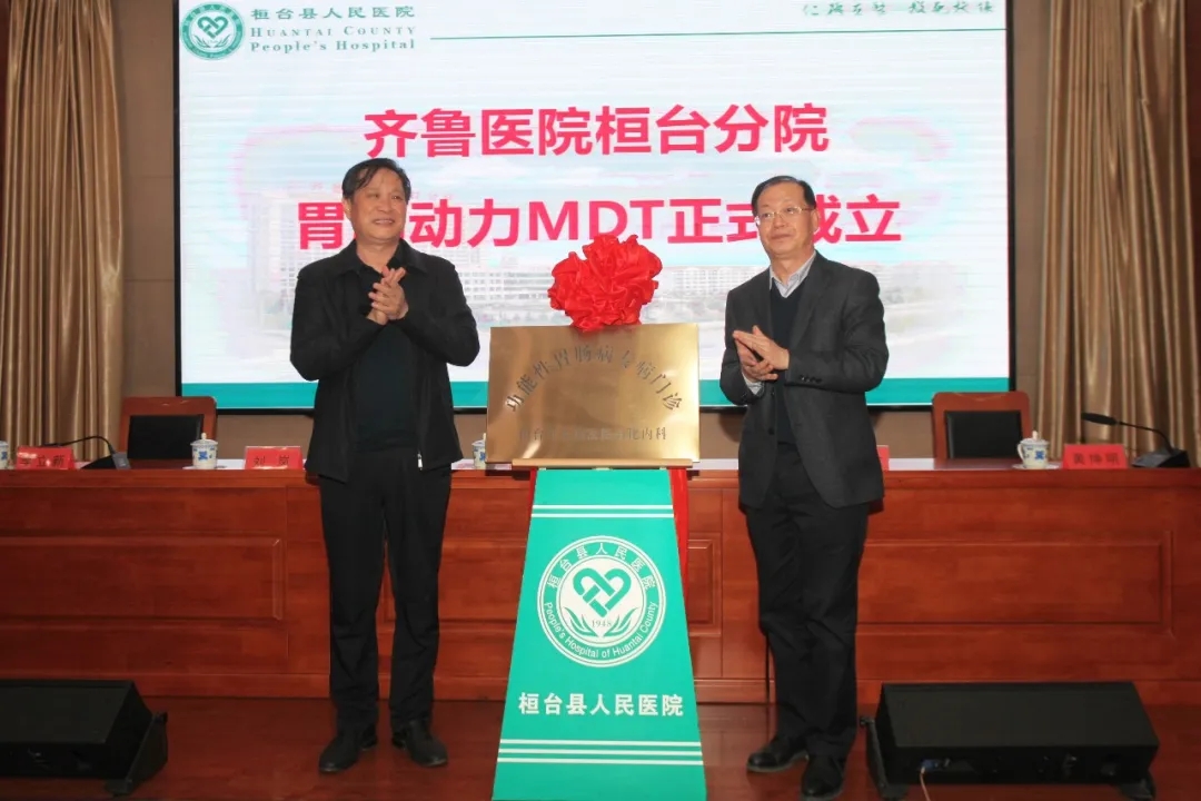 会议开幕式及胃肠动力MDT、专病门诊揭牌仪式 桓台县人民医院党委书记、院长李立新致辞。李立新院长首先对各位专家的到来表示欢迎,对多年来给予医院支持和帮助的各兄弟单位表示感谢。他指出,成立多学科合作的胃肠动力MDT,对于整合医院各方面优势力量,提高医院胃肠动力疾病的认知度、规范疾病的检查、评价及治疗具有重要的里程碑意义。 淄博市医学会消化病学分会主任委员黄坤明教授致辞。他代表淄博市医学会消化病学分会,对齐鲁医院桓台分院成立胃肠动力MDT、专病门诊表示祝贺。希望消化内科借助胃肠动力MDT的成立,把科室做大做强,做出自己的特色。 山东省医学会消化分会胃肠动力学组秘书刘岚教授在致辞中表示,胃肠功能性疾病是极易引起临床误诊的疾病,齐鲁医院桓台分院成立胃肠动力MDT及专病门诊,走在了全省县市级医院的前列,将造福更多百姓,并宣布“齐鲁医院桓台分院胃肠动力MDT正式成立”。 李立新院长、郝洪升教授共同为功能性胃肠病专病门诊、便秘专病门诊揭牌。 学术交流 南京中医药大学附属南京中医院、全国中医肛肠医疗中心薛雅红教授做了《基于盆底中心模式下排便障碍性疾病的诊治思路》专题讲座。 山东大学齐鲁医院消化内科郝洪升教授做了《肠易激综合征(IBS)的诊断思路》专题讲座。 山东大学第二医院消化内科刘岚教授做了《高分辨率食管测压与芝加哥分类标准》专题讲座。 桓台县人民医院消化内科刘冬冬主治医师做了GERD 合并功能性胃肠病病例分享。 专家们深入浅出的专题讲座,引起了与会人员的共鸣。大家纷纷表示,通过会议,进一步加深了对胃肠动力相关疾病的认识,解决了临床工作中的疑难问题,今后将通过多学科合作的方式,规范开展胃肠动力检查,综合评价和治疗此类疾病,为区域内群众提供更规范、更优质的服务。 齐鲁医院桓台分院胃肠动力MDT 齐鲁医院桓台分院胃肠动力MDT 是由消化内科、内镜诊疗中心、肛肠外科、胃肠外科为主导,精神卫生科、耳鼻喉科、呼吸内科、影像科等组成的多学科诊疗合作小组。通过在胃食管反流病、功能性胃肠病等胃肠动力紊乱疾病的诊治中交流合作,规范诊疗,为市内乃至省内胃肠动力相关疾病患者提供更优质的医疗服务。 近年来,医院积极推进“双向”模式,提升胃肠道诊疗专业水平,纵向联系上级医院,横向深入开展院内协作。与解放军东部战区总医院合作建立黎介寿院士工作站,开展肠瘘规范化诊疗。胃肠外科、消化内科与火箭军总医院就胃食管反流病联合开展手术诊疗。消化内科与山东大学齐鲁医院、山东省立医院,肛肠外科与北京广安门医院均建立了密切合作,让老百姓不出县就可以享受到省内外专家的医疗服务。 医院改造升级了内镜中心,引进国内先进的奥林巴斯290高清放大内镜、超声内镜、磁控胶囊内镜,成立胃肠动力检查室,设置高分辨率测压设备、24小时胃酸监测设备等,常规开展多种内镜下治疗,包括ESD、ESE、ESVD等,被国家卫健委评为“国家消化道早癌内镜筛查基地”。 胃肠动力MDT的成立,将使我院在胃肠动力相关疾病的标准化、规范化诊疗方面迈上新台阶。