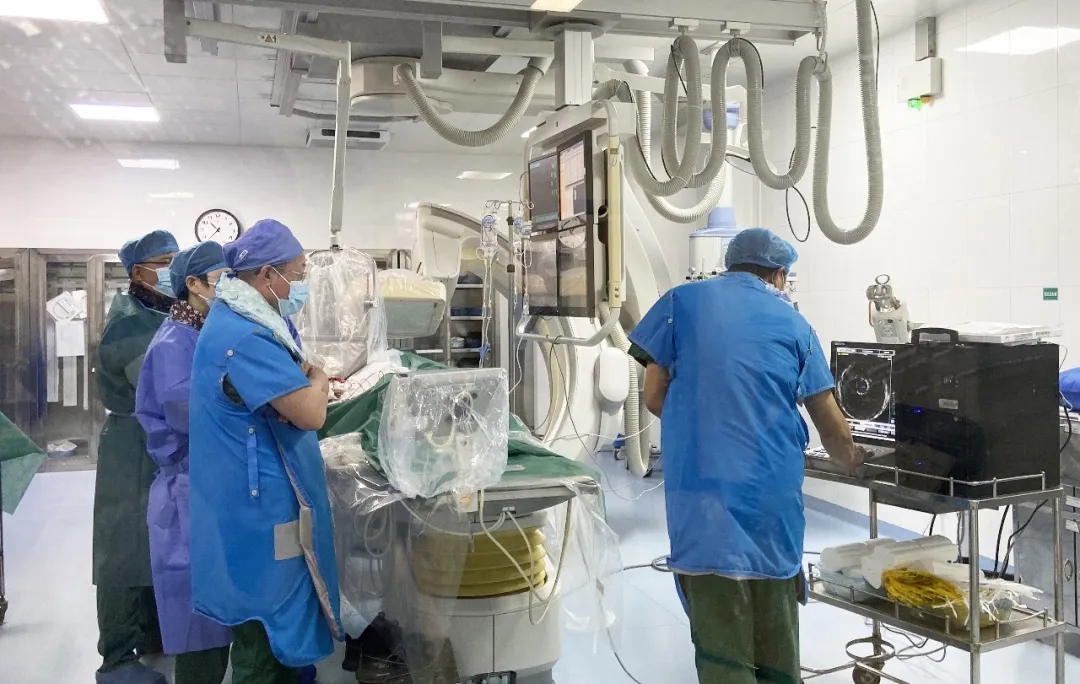 2020年11月18日,桓台县人民医院心内科二病区在高希春主任的带领下成功开展县内首例冠状动脉血管内超声(IVUS)检查。此项技术是在冠脉造影的基础上,对血管内腔的进一步检查,可将冠脉血管内病变看得更仔细,提高介入手术的成功率,减少并发症的发生。 血管内超声 将病变“看”得更仔细! 61岁的李先生既往有20年的糖尿病病史,在外院行冠脉CTA发现有三支血管病变,遂来我院心内科进一步诊断治疗。心内科二病区高希春主任建议首先行冠脉造影检查,术中发现患者冠脉三支病变中狭窄最重的是前降支,且伴有明显钙化。为更精准地判断血管病变情况,制定合理、规范的治疗方案,决定采用最新的冠脉超声技术为患者进行冠脉血管内检查。 精准诊断 选择最合适的治疗方式! 检查发现前降支中段狭窄最重,最小管腔面积2.17mm²且伴有360度环形钙化,达到支架植入标准,高希春主任建议先行冠脉内旋磨后再行支架植入术,防止支架植入后发生支架膨胀不全,出现支架内血栓的风险。整个检查过程仅用20分钟。 精确诊断 精准治疗 冠状动脉血管内超声检查为冠状动脉介入(PCI)治疗提供更强有力的影像指导,为科学规避过度治疗、乱放支架等问题提供了技术依据,标志着桓台县人民医院冠心病的介入诊治水平再上新台阶,实现精确诊断,精准治疗。 冠状动脉血管内超声(IVUS) 高希春主任介绍,传统冠脉造影一直被认为评价冠脉病变的“金标准”,但其在评价病变性质方面仍存在一定的局限性。 冠状动脉血管内超声(IVUS)检查,是将发丝般粗细的超声探头送入患者冠脉血管内,在血管腔内进行360度扫描,通过显示屏清晰显示心脏冠状动脉的结构和病变情况。它可在冠脉造影的基础上,对冠状动脉内腔实施进一步检查,不仅能清晰显示血管壁厚度、管腔面积和形状,还可以精准评估冠脉内斑块大小、性质,观察支架贴壁、膨胀是否良好,将冠脉血管内病变看得更仔细,提高介入手术的成功率,减少并发症的发生。