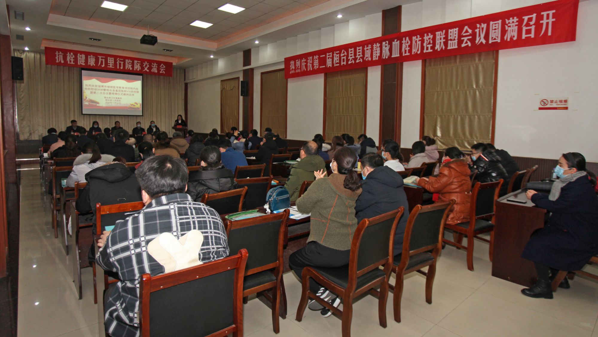 12月26日,淄博市继续医学教育项目院内血栓防控培训班暨桓台县基层医院VTE防控联盟第二次会议在我院小学术报告厅举行。桓台县卫生健康局医政科科长赵健,淄博市中心医院张永杰教授,淄博市第一医院刘彤教授,北大医疗鲁中医院李泽树教授,桓台县人民医院副院长张宝忠出席会议。来自全市的专家和同仁80多人参加会议。