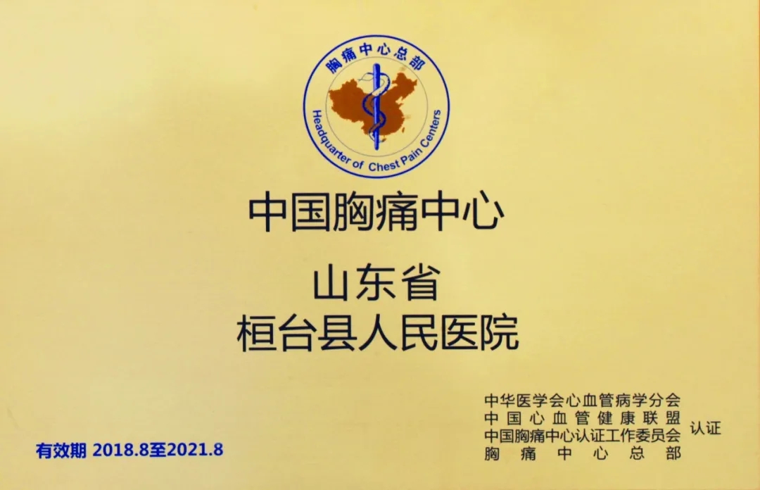 2016年11月15日,桓台县人民医院启动国家级胸痛中心建设。2018年8月6日,通过国家级认证,成为县域内首家国家级胸痛中心。截至目前,医院胸痛中心已成功救治千余例急性心肌梗死患者,从成立之初平均DtoB时间217分钟,经过不断地流程优化,到平均DtoB时间60多分钟,最短时间仅用15分钟,创下了淄博市最快记录。