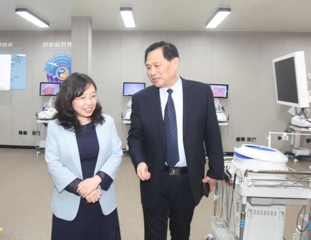 李立新院长介绍了医院基本情况及在“三高”共管方面所做的工作。要求全院医护人员以本次学习为契机,将徐教授的指导紧密结合医院实际,进一步强化院内MDT工作,推动诊疗规范化、流程化、全面化,争取实现专业发展推开一道门的良好成效,全力为人民群众的身体健康保驾护航。 徐进教授指出,高血压、糖尿病、血脂异常(三高)是导致我国心脑血管疾病攀升的三大高危因素,“三高”患病率高,但知晓率却很低。建立“三高”共管机制,是为了让所有医护人员共同关注“三高”疾病,最终达到提高人民群众生活质量、延长人均寿命的目的。桓台县人民医院作为县级医院在多年的发展中取得了不俗的成绩,在省内县级医院中名列前茅,希望医院积极推进“三高”共管项目,同时祝愿医院在以后的发展中越来越好。 随后,徐进教授围绕《CVD合并T2M患者的心衰管理》和《2020AACE绝经后骨质疏松指南解读》做了精彩授课,并与在场医护人员展开了交流探讨。 讨论交流 会后,徐进教授参观了我院微创手术培训中心 三高症是心脑血管疾病的主要危险因素,正在呈现年轻化的发病趋势。我院强化“疾病预防+健康管理”理念,查体中心、内分泌科等多科室联动,开展了健康指导、防治衔接。内分泌科牵头落实多学科诊疗协作,在“三高”共管方面下功夫,开展胰岛素泵强化降糖治疗,糖尿病足、骨质疏松症及肥胖症的诊治,甲状腺细针穿刺等特色诊疗,以诊疗程序的规范,推动诊疗水平的提升。 我院将以此次活动为契机,进一步强化院内MDT工作,推动高血压、糖尿病、血脂异常的规范化管理,提高慢性病防治水平,更好地满足区域内人民群众的健康需求。