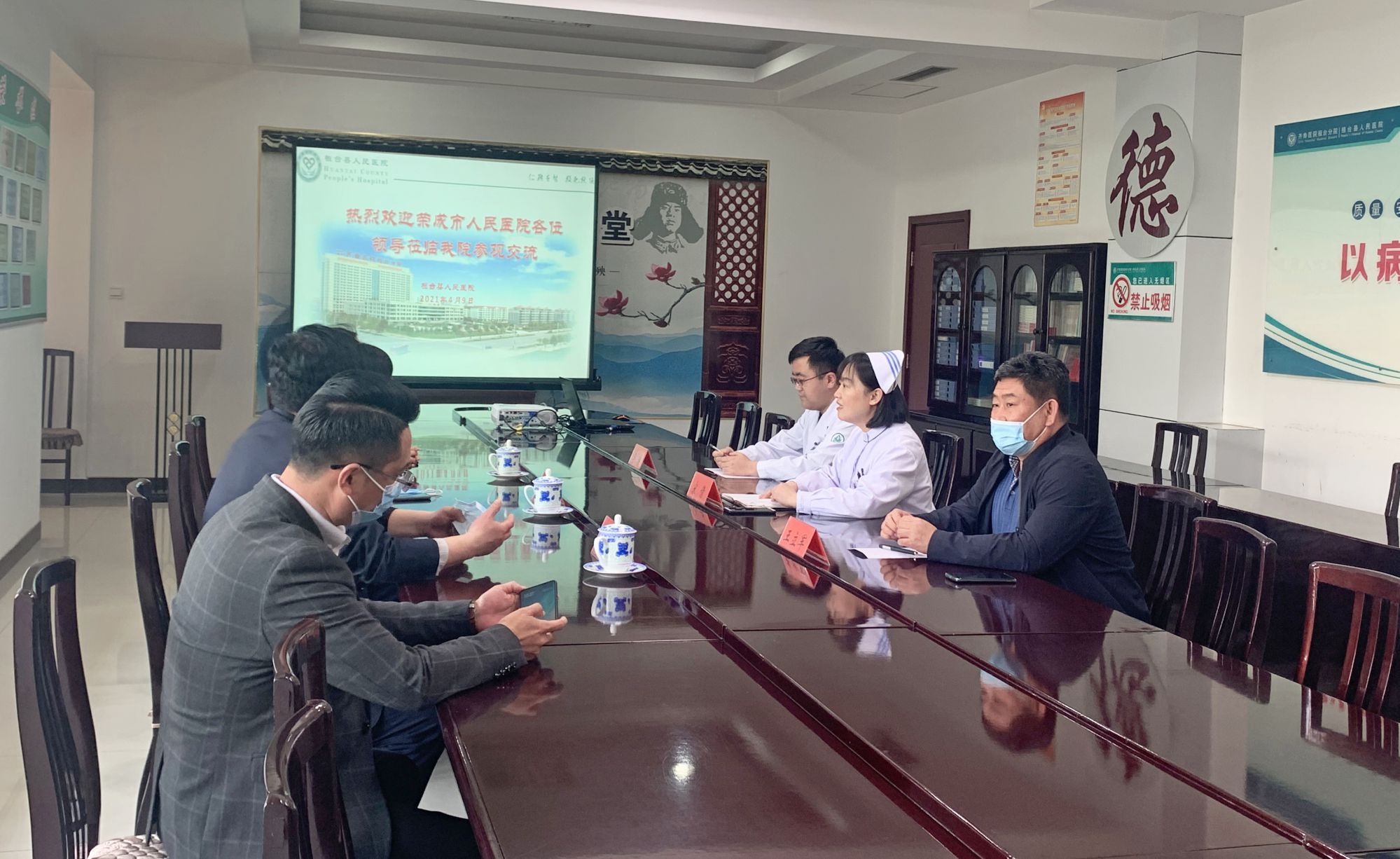 4月9日,荣成市人民医院医务科主任连俊杰一行来院参观“血栓(VTE)防治中心”建设工作。医院护理部主任宋倩、介入血管外科主任王立军等介绍了VTE防治中心建设的经验。