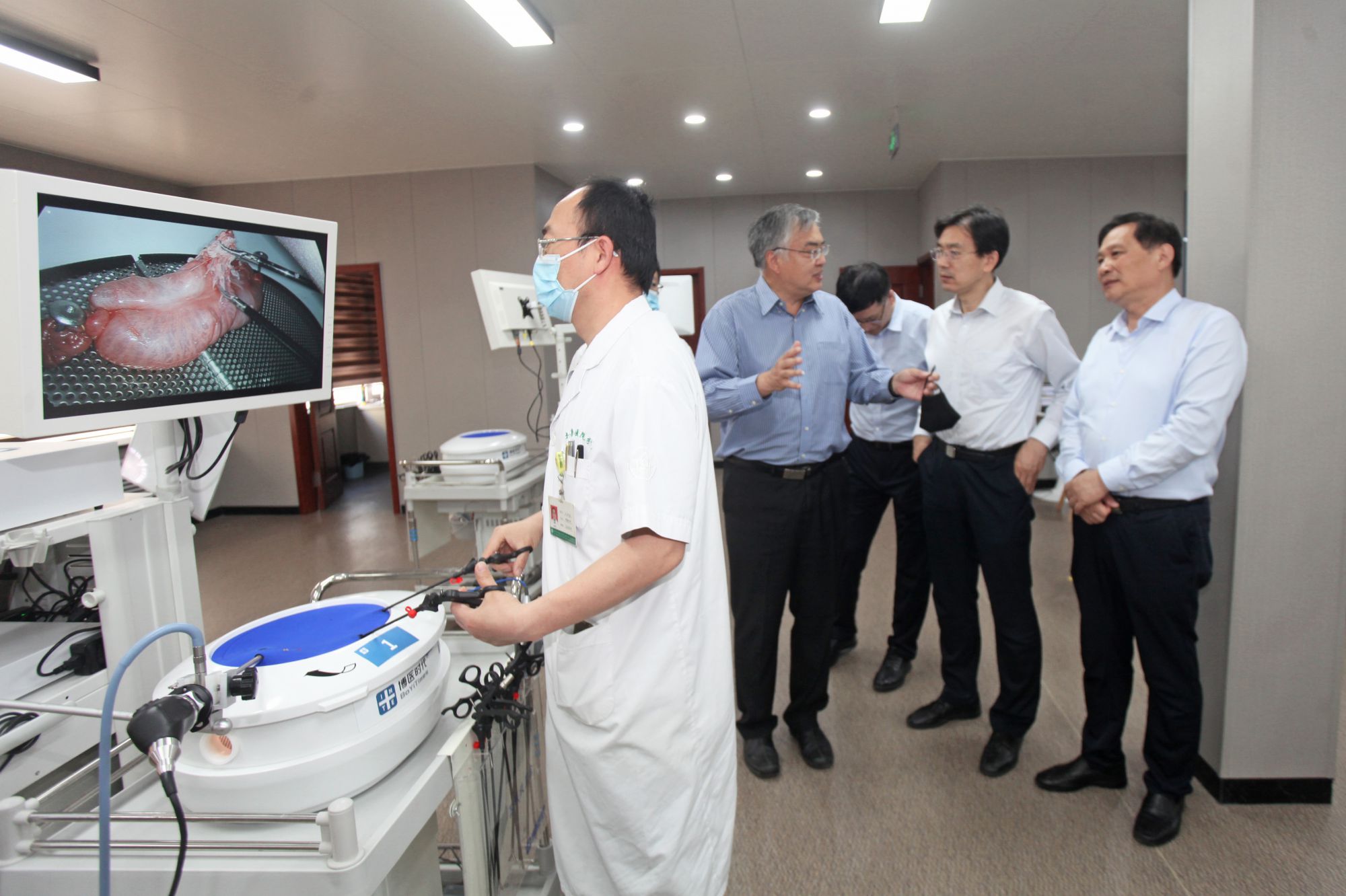 李路明教授和王劲教授参观了我院微创手术培训中心。