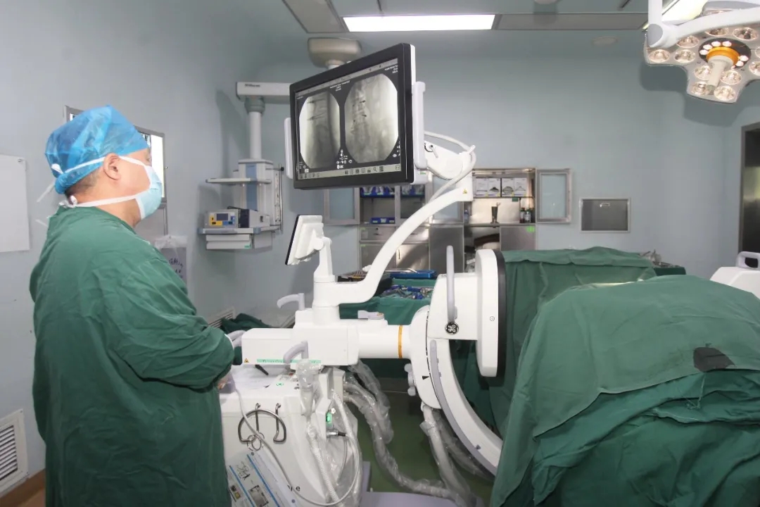 近日,骨科二病区医疗团队在我院新引进的GE OEC晶熠MAX大平板助力下,成功为一例腰椎骨折患者,实施腰椎骨折闭合复位内固定术。术中依托晶熠MAX大平板的超大视野及高清成像,骨科二病区主任石新通过微创切口,精准植入椎弓根螺钉,大大缩短了手术时间,手术十分顺利,患者术后第二天即可下床活动。