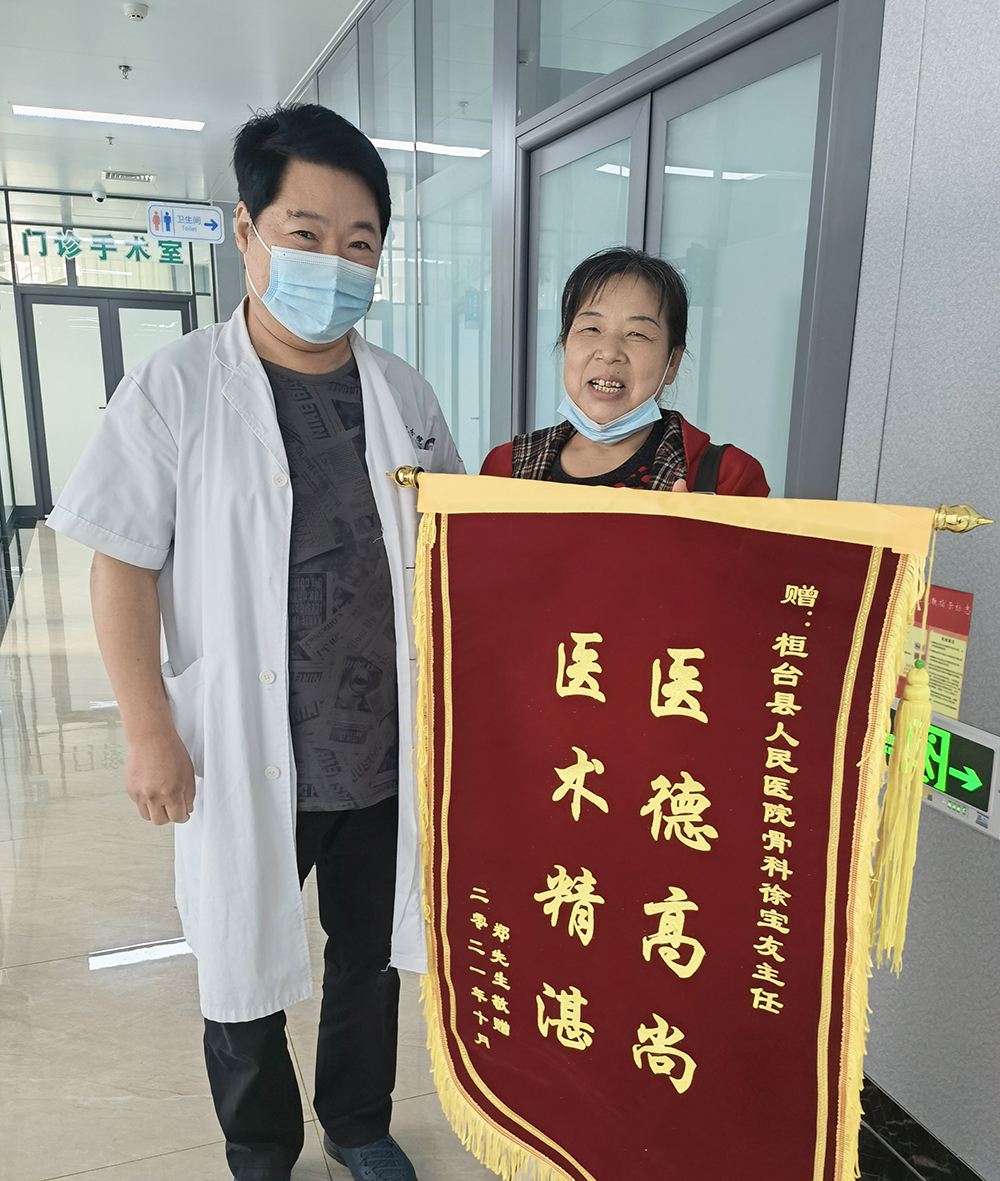 10月11日,一位患者家属将一面印有“医德高尚、医术精湛”的锦旗送到桓台县人民医院骨科一病区徐宝友主任的诊室,真诚地感谢他的悉心治疗和优质服务。