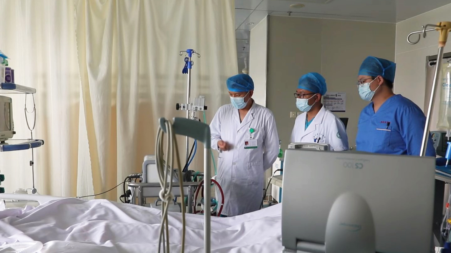 52岁的张阿姨因胸背部疼痛、胸闷来院就诊,来院时持续头晕,全身大汗,恶心呕吐,心电图检查后确诊为急性心肌梗死导致的心源性休克,立即启动胸痛中心,心内科一病区胸痛救治团队立即给予冠状动脉造影检查,术中发现冠状动脉左主干、前降支、回旋支均可见大量血栓,病情危急,虽术中抽吸出大量血栓,但患者心肌梗死面积过大,仍出现了心源性休克,血压持续偏低,转到重症医学科继续抢救。给予升压药物、无创呼吸机辅助通气、主动脉内球囊反搏等一系列治疗后,病情仍继续加重,高敏肌钙蛋白大于10000.0ng/ml,N末端心房利钠肽8410.0pg/ml,心肌梗死面积非常大,心力衰竭严重,血压低导致急性肝肾功能衰竭,病情随时会加重导致猝死。多学科会诊决定使用目前最有效的“体外膜肺氧合治疗(ECMO)”,治疗期间每天进行心脏超声检查评估,动态监测患者心脏功能恢复情况,调整治疗方案,ECMO治疗12天后,撤离体外膜肺氧合,停用升压药物。19天后撤离主动脉内球囊反搏,血压平稳,目前患者好转出院。