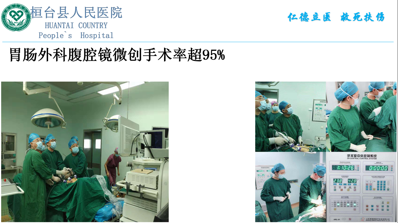 近年来,腹腔镜技术在胃肠外科的应用取得了突飞猛进的发展,微创手术的优势也为越来越多的外科医生和患者所认识,其应用逐渐得到推广和普及。我院胃肠外科紧跟时代步伐,不断学习和引进胃肠外科微创治疗的先进的技术和理念,应用于临床诊疗中,目前95%以上的手术均应用微创治疗,手术恢复快、患者不再痛苦。